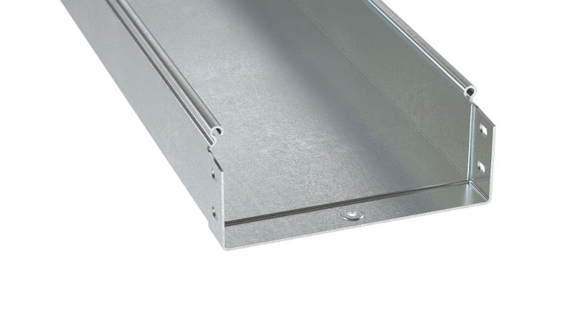 Неперфорированный лоток в специальном исполнении "Горячий цинк" применяется для прокладки кабеля как в помещении, так и на открытом воздухе, и имеет повышенную устойчивость к коррозии. Лотки соединяются внахлест с помощью фирменного соединения "мама-папа", с использованием трех винтов и трех гаек. Это существенно сокращает время монтажа и обеспечивает непрерывный контур заземления. Конструктив лотка предупреждает повреждение кабеля при прокладке. При применении крышки и специальных комплектов уплотнителей SIP может достигаться степень пыле- и влагозащиты IP 44. Толщина стали – 1.5 мм, высота лотка – 80 мм, ширина – 600 мм, длина – 3000 мм. Полезное сечение – 47760 мм.