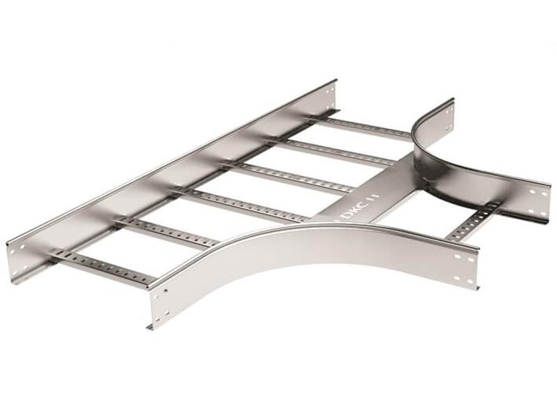 Т-образный ответвитель позволяет создавать ответвления трассы в горизонтальной и вертикальной плоскости. Позволяет проложить кабели с большим сечением благодаря радиусу изгиба R600. В состав комплектного аксессуара входят соединительные пластины и крепежные элементы, необходимые для надежного и качественного монтажа. Ширина – 600 мм, высота – 80 мм. Толщина лонжерона изделия – 1,5 мм, а толщина поперечины – 1,0 мм. Данное изделие представлено в исполнении "Сталь, оцинкованная по методу Сендзимира".