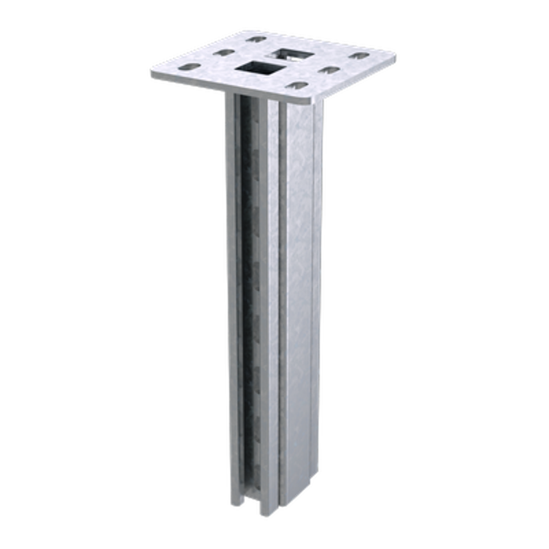 Двойной вертикальный подвес усиленной конструкции BSD-92, применяется для монтажа консолей: ВВН-60, ВВН-70, ВВН-80, BBD-21, BBP-21/41; назначение: одно/двусторонний и параллельный монтаж кабельных трасс; для монтажа подвесных конструкций. Подвес монтируется к полу или потолку. Параметры С-образного двойного профиля подвеса 41х21 мм, толщина профиля 2,5 мм, толщина пластины 6 мм, толщина трубы 2 мм, в основании 6 отверстий под метизы М12. Длина подвеса - 600 мм. Противокоррозионное цинкнаполненное покрытие повышает срок службы изделия в условиях агрессивных сред и высокой влажности.