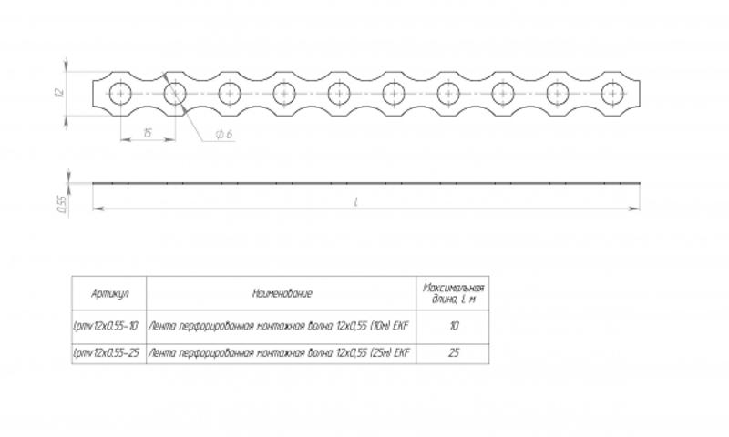 Лента перфорированная монтажная волна 12х0,55 (25м) EKF | lpmv12x0.55-25 | EKF