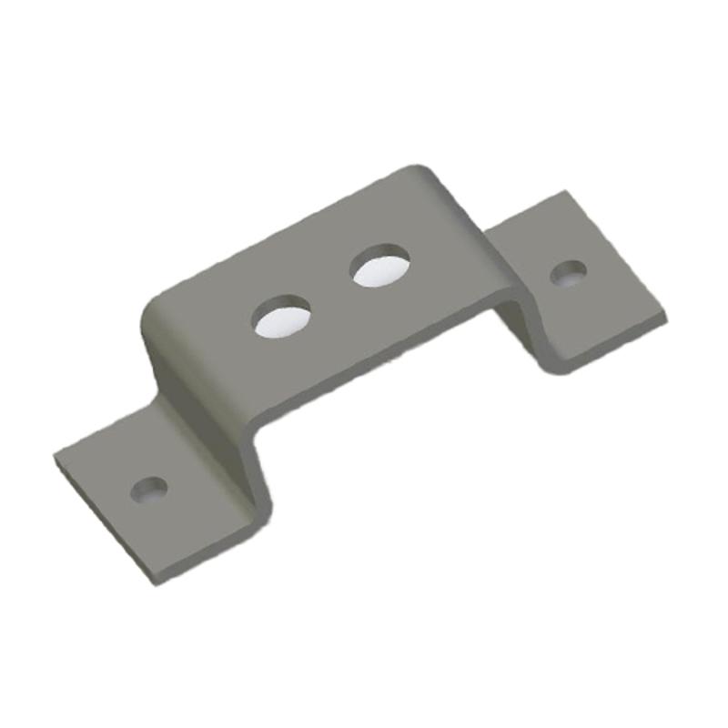 Опора неподвижная база 2 входит в состав неподвижных опор. Состоит из изогнутой пластины с отверстиями под крепление к основанию и двумя приварными гайками М20. Основной целью является крепление неподвижной опоры к основанию.