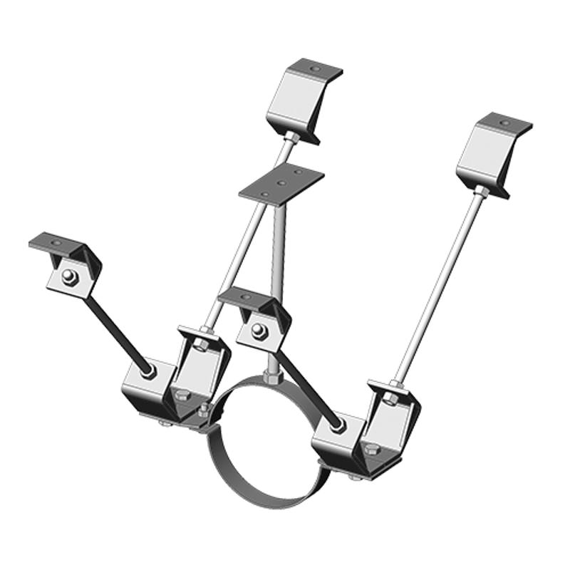 Опора неподвижная тип 3 состоит из ряда элементов и трех хомутов для неподвижной опоры. Основной целью является ограничение перемещений горячих трубопроводов.