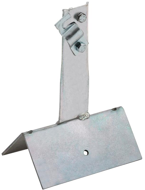 Держатель проводника круглого для конька с болтовым зажимом широкий предназначен для закрепления прутка на коньке скатной кровли. Держатель крепится к кровле при помощи метизов. Зажим проводника происходит при помощи болтового соединения. Материал корпуса - сталь с гальваническим цинковым покрытием.