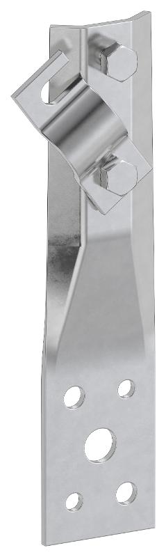 Держатель прямой с болтовым зажимом предназначен для монтажа круглого проводника на парапетах и фасадах зданий.