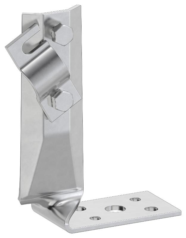 Держатель угловой скрученный с болтовым зажимом предназначен для монтажа проводника на горизонтальные, вертикальные или наклонные поверхности. Скрученная конструкция держателя позволяет крепить проводник на узкие парапеты.
