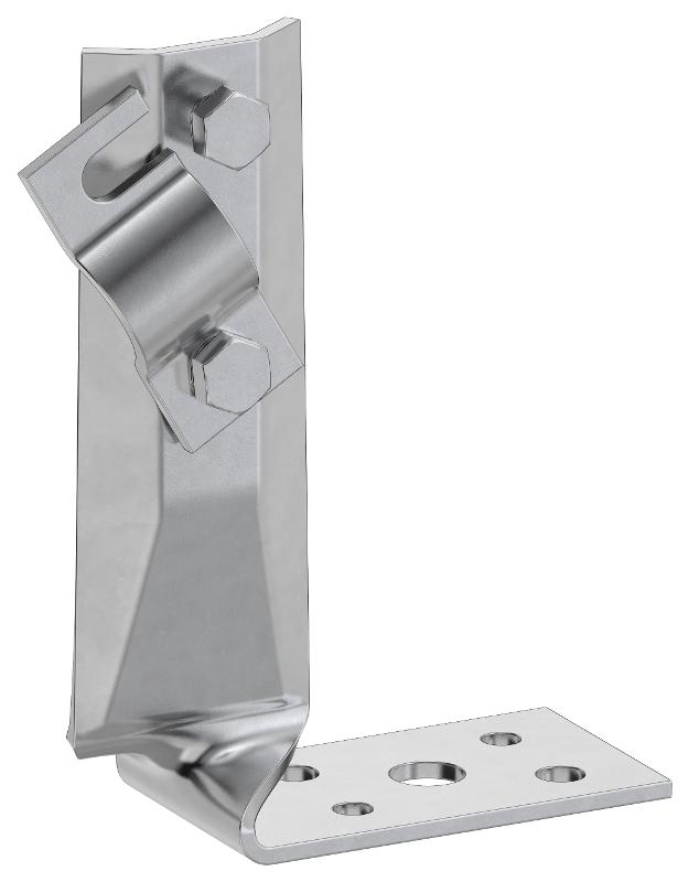 Держатель угловой скрученный с болтовым зажимом предназначен для монтажа проводника на горизонтальные, вертикальные или наклонные поверхности. Скрученная конструкция держателя позволяет крепить проводник на узкие парапеты. Монтируется на поверхности при помощи саморезов. Зажим проводника происходит при помощи болтового соединения. Материал корпуса - сталь горячеоцинкованная.