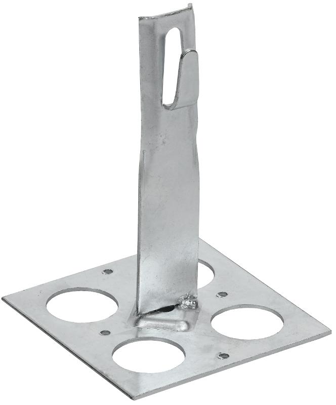 Держатель проводника круглого для плоской кровли с болтовым зажимом предназначен для закрепления прутка на плоской или наклонной кровле. Держатель крепится к кровле при помощи клея. Зажим проводника происходит путем загибания «язычка» держателя. Материал корпуса - сталь с гальваническим цинковым покрытием.
