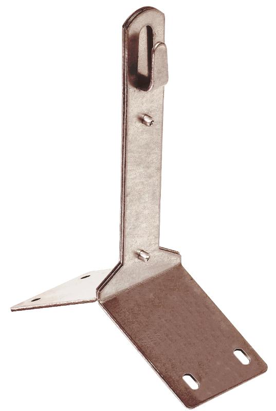 Держатель проводника круглого 6 – 8 мм для конька товарного знака IEK используется для закрепления прутка молниезащитной сетки на коньке скатной кровли. Выполнен на основе держателя круглого проводника 6 – 8 мм дополненных раздвижной скобой для установки на конек скатной кровли.