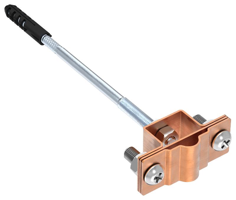 Держатель проводника круглого 8 – 10 мм для деревянного фасада товарного знака IEK используется для крепления круглых проводников на деревянном фасаде здания. Держатель выполнен на основе металлического держателя проводника круглого, закрепленного на шпильке с резьбой по дереву. Держатель позволяет закрепить проводник на расстоянии 120 мм от фасада.