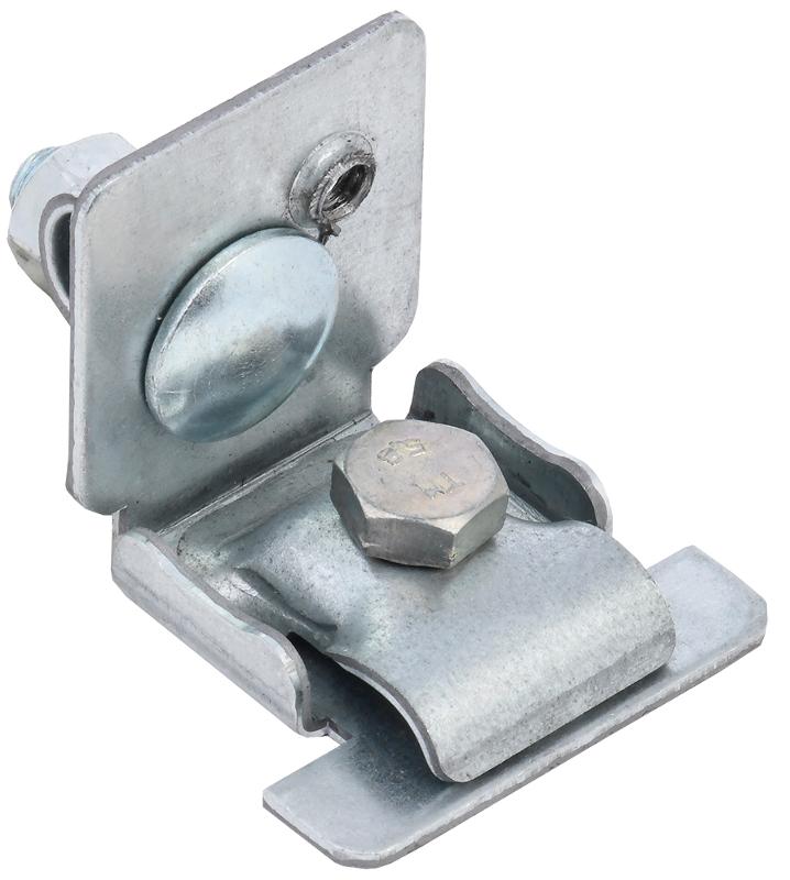 Держатель проводника круглого универсальный 6 – 10 мм фальц 0,7 – 8 мм товарного знака IEK используется для крепления круглых проводников на стоячем плоском фальцевом шве фальцевой кровли или на других металлических конструкциях.