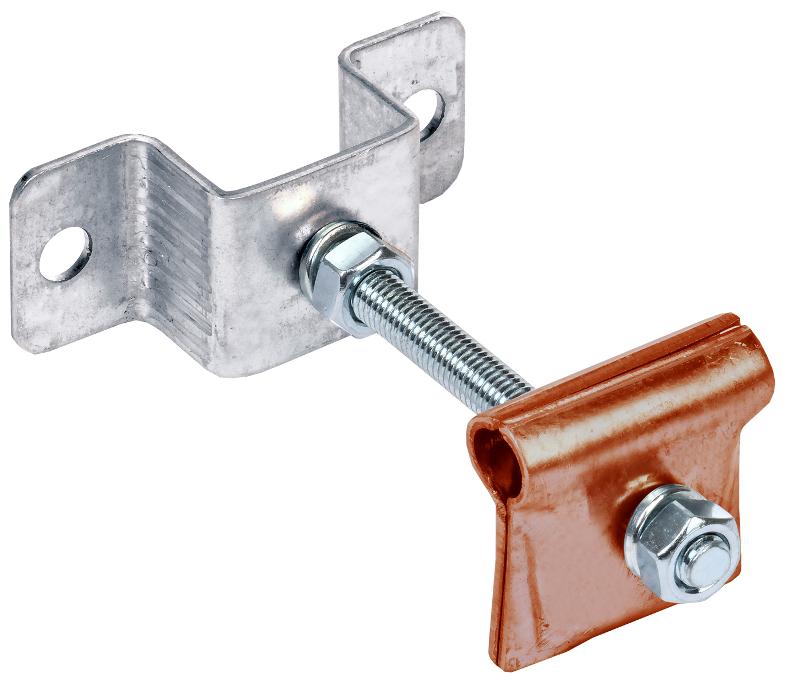 Держатель-зажим соединительный круглого проводника 6 – 12 мм опорный L = 100 мм товарного знака IEK используется для крепления круглых проводников на фасаде либо кровле под прямым, произвольным углом или в параллельном направлении. Для крепления на плоскости скоба имеет два отверстия под винты М8. Изделие позволяет зафиксировать проводник на расстоянии от 25 до 100 мм до плоскости установки.