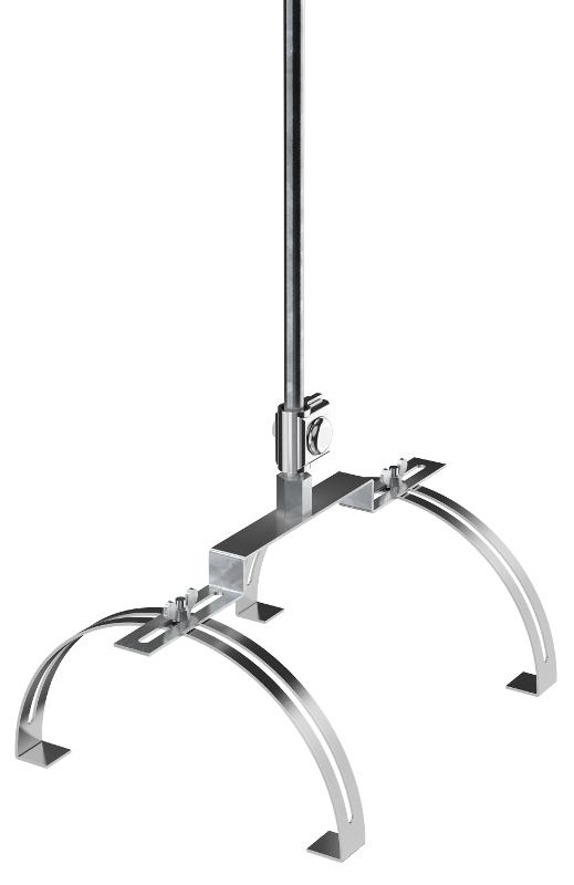 Молниеприемник товарного знака IEK с двойным креплением предназначен для установки на круглый конек кровли.