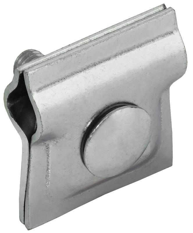 Крепится к кровле при помощи метизов. Зажим проводника происходит при помощи болтового соединения. Материал корпуса - сталь с гальваническим цинковым покрытием.