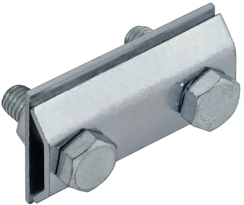Зажим соединительный сквозной пруток-пруток предназначен для соединения круглых проводников. Способен зажимать проводники как соосно, так и параллельно друг другу. Состоит из двух пластин и зажимных болтов с гайками. Материал корпуса - сталь горячеоцинкованная.