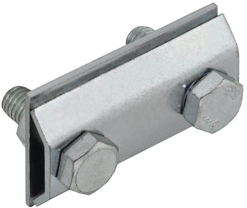 Зажим соединительный сквозной пруток-пруток предназначен для соединения круглых проводников. Способен зажимать проводники как соосно, так и параллельно друг другу. Состоит из двух пластин и зажимных болтов с гайками. Материал корпуса - сталь с гальваническим цинковым покрытием.