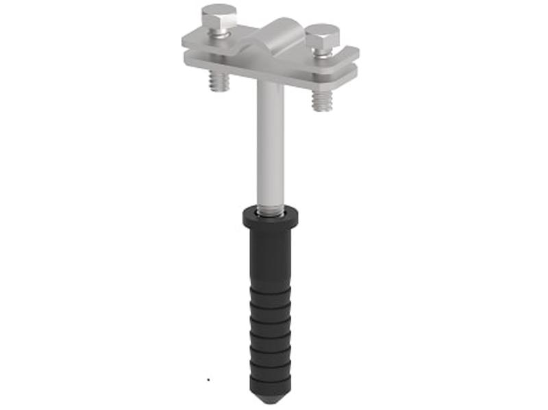 Держатель для круглых проводников с дюбелем, исполнение с двухвинтовой накладкой, L-250. Материал - горячеоцинкованная сталь.