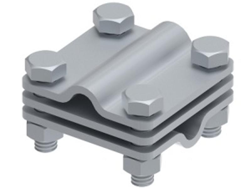 Соединитель крестовой 55х55 для параллельного, крестового и Т-образного соединения прутка диаметром 6-10 мм. С разделительной пластиной. Монтаж с помощью 4 винтов с шестигранной головкой M8 x 25 и 4 шестигранных гаек M8. Материал - горячеоцинкованная сталь.