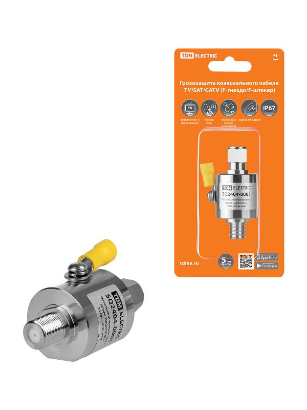 Грозозащита коакс каб TV/SAT/CATV, F-гнездо/F-штекер 75 Ом DC-2,5 ГГц, газ,100Вт, с зазем, IP67, | SQ2404-0001 | TDM