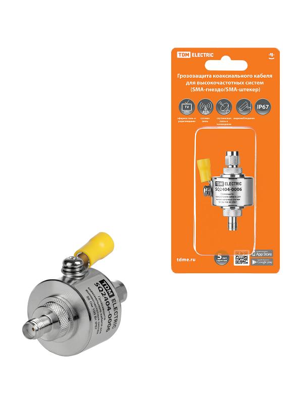 Грозозащита коакс кабеля ВЧ систем, SMA-гнездо/SMA-штекер 50 Ом DC-6 ГГц 200Вт, с зазем, IP67, | SQ2404-0006 | TDM