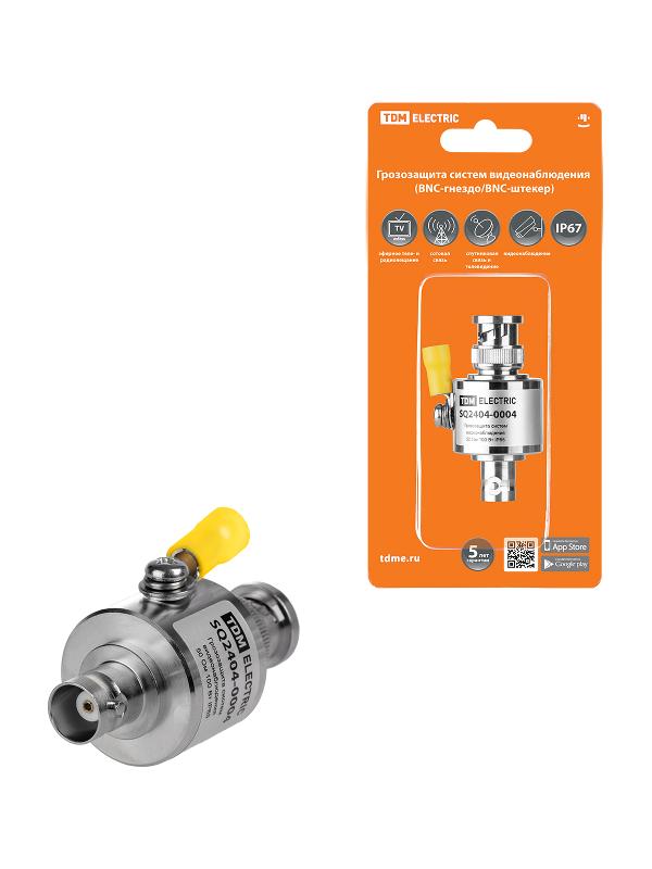 Грозозащита систем видеонаблюдения, BNC-гнездо/BNC-штекер для ВЧ кабеля 75 Ом, с заз, газ, МГц, | SQ2404-0004 | TDM