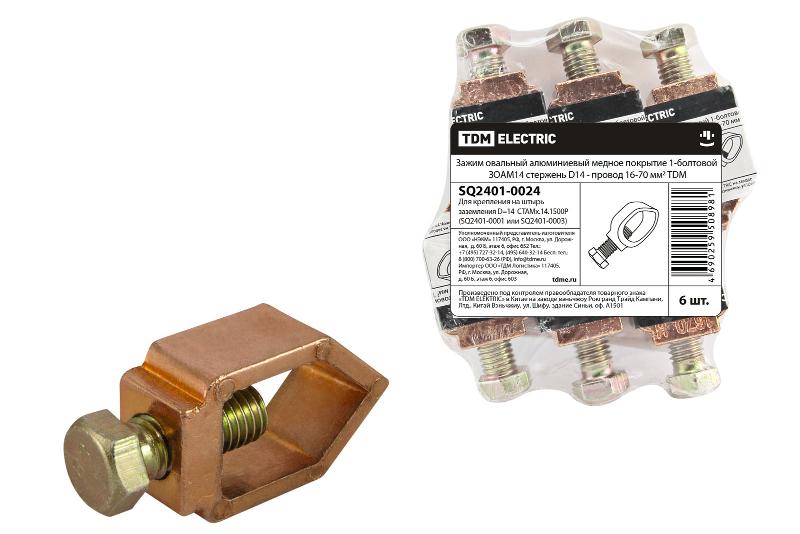 Зажим овальный алюминиевый медное покрытие 1-болтовой ЗОАМ14 стержень D14 - провод 16-70 мм2 | SQ2401-0024 | TDM
