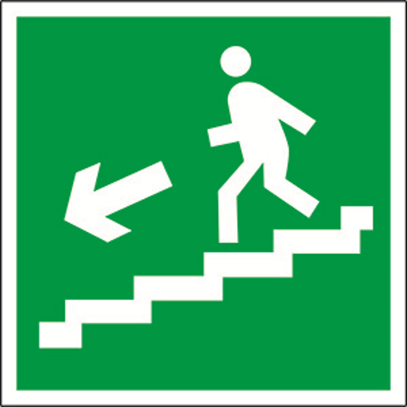 Пиктограмма (Наклейка) "Напр. к эвакуац. выходу по лестн. вниз (лев.)" NPU-2424.E14 для ESTETICA, SPUTNIK | a11041 | Белый свет