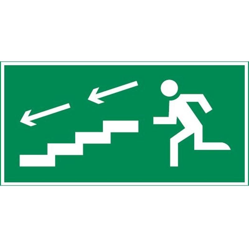 пиктограмма "ПО ЛЕСТНИЦЕ ВНИЗ ВЛЕВО" 400х200мм для аварийно-эвакуационного светильника Vault | V5-EM03-60.013.038 | VARTON