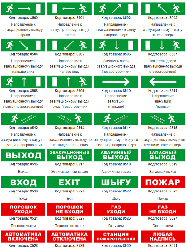 Оповещатель охранно-пожарный световой (табло) «ВЫХОД» SKAT-12 LUX предназначен для обозначения (указания путей) эвакуационных выходов при возникновении чрезвычайной ситуации и/или пожара, а также в качестве информационного табло. В ассортименте присутствуют более 30 видов сменных нестираемых объёмных надписей, необходимых для быстрого и грамотного проектирования путей эвакуации: