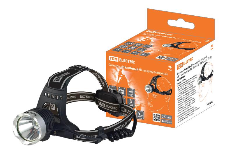 Фонарь «Налобный 9» аккумуляторный, 5Вт 1 светодиод CREE, Li-Ion 2x18650 2 Ач, | SQ0350-0048 | TDM