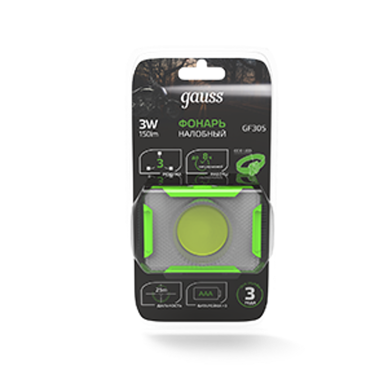 Фонарь налобный GFL305 3W 150lm 3xAAA LED 1/12/60 | GF305 | Gauss
