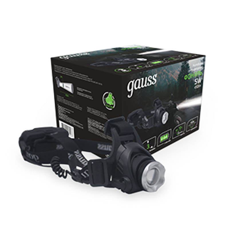 Фонарь налобный GFL407 5W 450lm Li-ion 2400mAh LED 1/12/48 | GF407 | Gauss