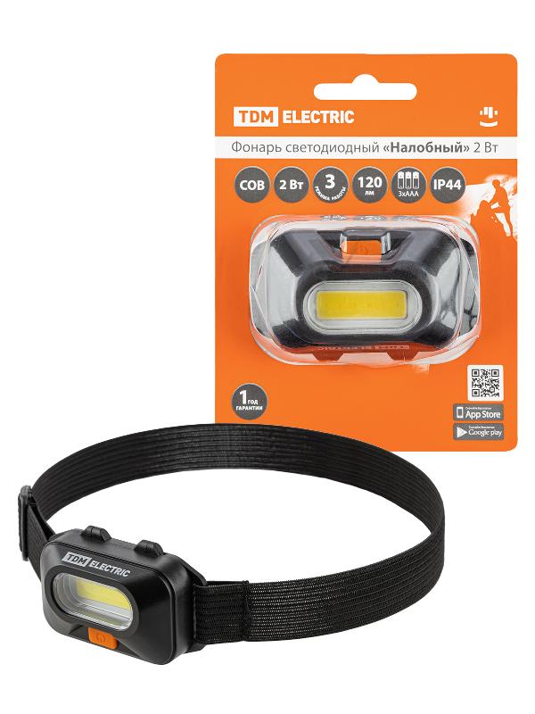 Фонарь светодиодный "Налобный" 2 Вт COB, 120 лм, бат. 3*AAA | SQ0350-0072 | TDM