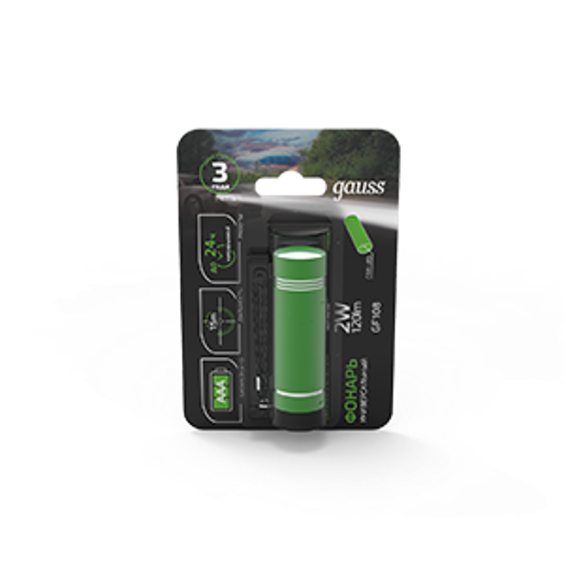 Фонарь ручной Gauss модель GFL107 ультракомпактный карманный фонарь размером с брелок и мощными осветительными функциями. Инновационные СОВ LED светодиоды дают 120лм яркого света с длинной светового луча 15м. Компактный размер и стильный дизайн позволяют фонарю дополнить содержимое дамской косметички или мужского сумки-слинга как полезный и не занимающий много места аксессуар. Фонарик работает от 3 минипальчиковых батареек, продолжительность работы 24 ч на одном комплекте. Для подвеса имеется на корпусе шнурок-петля.