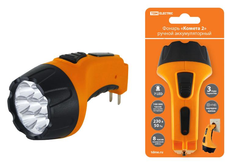 Фонарь универсальный «Комета 2» ручной аккумуляторный, 7 светодиодов, 0,8Ач 230В вилка | SQ0350-0040 | TDM