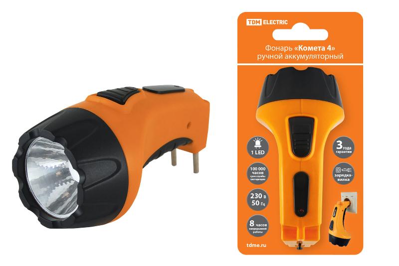 Фонарь универсальный «Комета 4» ручной аккумуляторный, 1Вт 1 светодиод, 0,5Ач 230В вилка | SQ0350-0042 | TDM