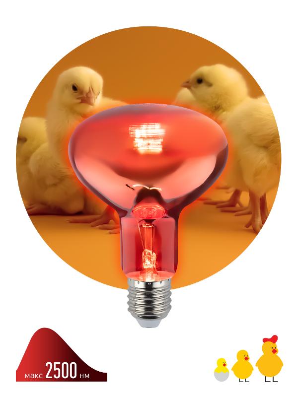 Инфракрасная лампа ИКЗК 230-100 R95 E27 кратность 1 шт для обогрева животных и освещения 100 Вт | Б0062411 | ЭРА