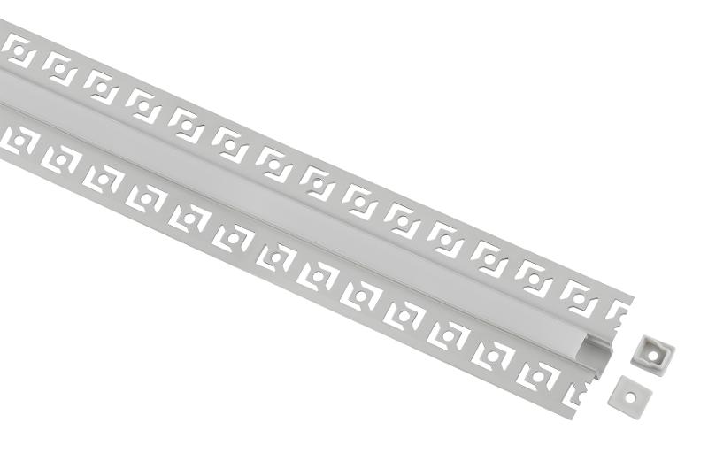 Комплект алюминиевого профиля под штукатурку предназначен для установки светодиодных лент с шириной подложки до 9мм. За счёт отведения тепла увеличивает срок службы светодиодной ленты. Анодированное покрытие обеспечивает устойчивость к воздействиям окружающей среды и легко окрашивается. Эстетично смотрится в интерьере, обеспечивает механическую защиту. В комплекте алюминиевый профиль 5313 53х13 мм 2,5 м, белый матовый экран из поликарбоната 2,5 м и 2 заглушки.