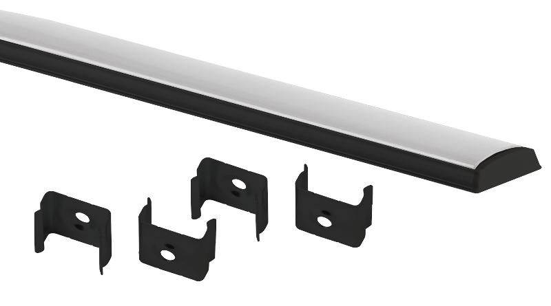 Комплект гибкого накладного алюминиевого профиля предназначен для установки светодиодных лент с шириной подложки до 10 мм. За счёт отведения тепла увеличивает срок службы светодиодной ленты. Покрытие из порошковой краски обеспечивает устойчивость к воздействиям окружающей среды. Эстетично смотрится в интерьере, обеспечивает механическую защиту. В комплекте гибкий накладной алюминиевый профиль (черного цвета) CAB292 15х6 мм 2 м, белый матовый экран из поликарбоната 2 м, 4 крепления и 2 заглушки.