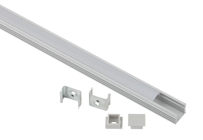 Комплект накладного алюминиевого профиля предназначен для установки светодиодных лент с шириной подложки до 10 мм. За счёт отведения тепла увеличивает срок службы светодиодной ленты. Анодированное покрытие обеспечивает устоичивость к воздействиям окружающей среды и легко окрашивается. Эстетично смотрится в интерьере, обеспечивает механическую защиту. В комплекте накладной алюминиевый профиль САВ261 16х12 мм 1 м, белый матовый экран из поликарбоната 1 м, 2 крепления и 2 заглушки.