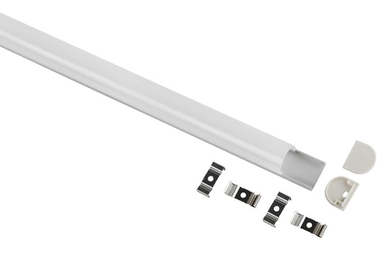 Комплект накладного алюминиевого профиля предназначен для установки светодиодных лент с шириной подложки до 22мм. За счёт отведения тепла увеличивает срок службы светодиодной ленты. Анодированное покрытие обеспечивает устоичивость к воздействиям окружающей среды и легко окрашивается. Эстетично смотрится в интерьере, обеспечивает механическую защиту. В комплекте накладной алюминиевый профиль 2420 24х20 мм 2 м, белый матовый экран из поликарбоната 2 м, 4 крепления и 2 заглушки.