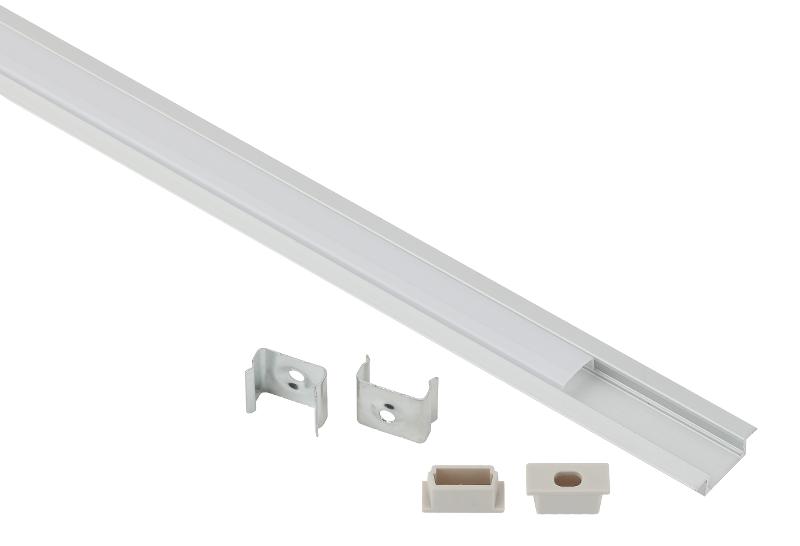 Комплект врезного алюминиевого профиля предназначен для установки светодиодных лент с шириной подложки до 10 мм. За счёт отведения тепла увеличивает срок службы светодиодной ленты. Анодированное покрытие обеспечивает устоичивость к воздействиям окружающей среды и легко окрашивается. Эстетично смотрится в интерьере, обеспечивает механическую защиту. В комплекте сврезным алюминиевым профилем САВ251 22х6 мм, 1 м, белый матовый экран из поликарбоната 1 м, 2 крепления и 2 заглушки.