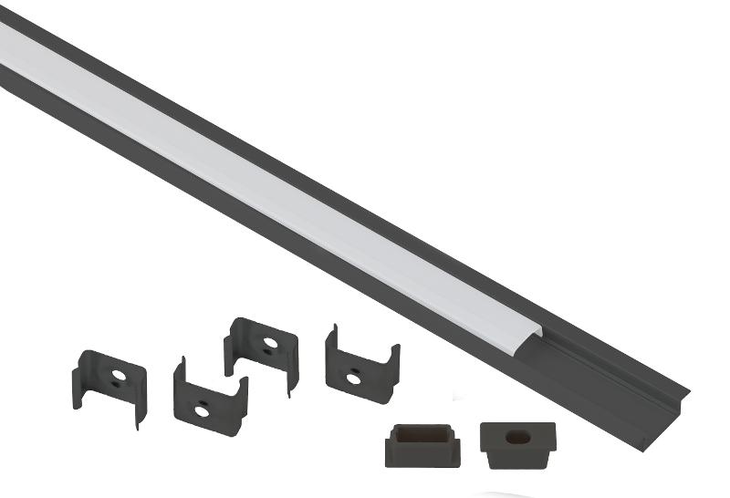 Комплект с врезным анодированным профилем 2206B 22х6мм, 2м, черный САВ251 | Б0062792 | ЭРА