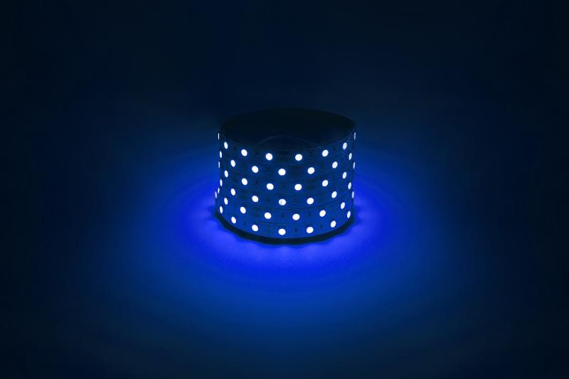 Светодиодная лента LS5050-14,4-60-12-B-IP20-1 year-5m со степенью защиты от пыли и влаги IP20 - современный способ создания внутреннего освещения, подсветки ниш, лестничного пространства, систем хранения, а также декоративного и художественного оформления любых объектов и форм. Легко и быстро устанавливается на любой гладкой поверхности с помощью скотча, расположенного на оборотной стороне ленты. Используя алюминиевый профиль, можно создавать необычные и функциональные решения освещения в Вашем интерьере. Рабочее напряжение ленты составляет 12 В, а мощность равна 14,4 Вт/м. Светодиодная лента обладает - синим цветом свечения (465нМ).