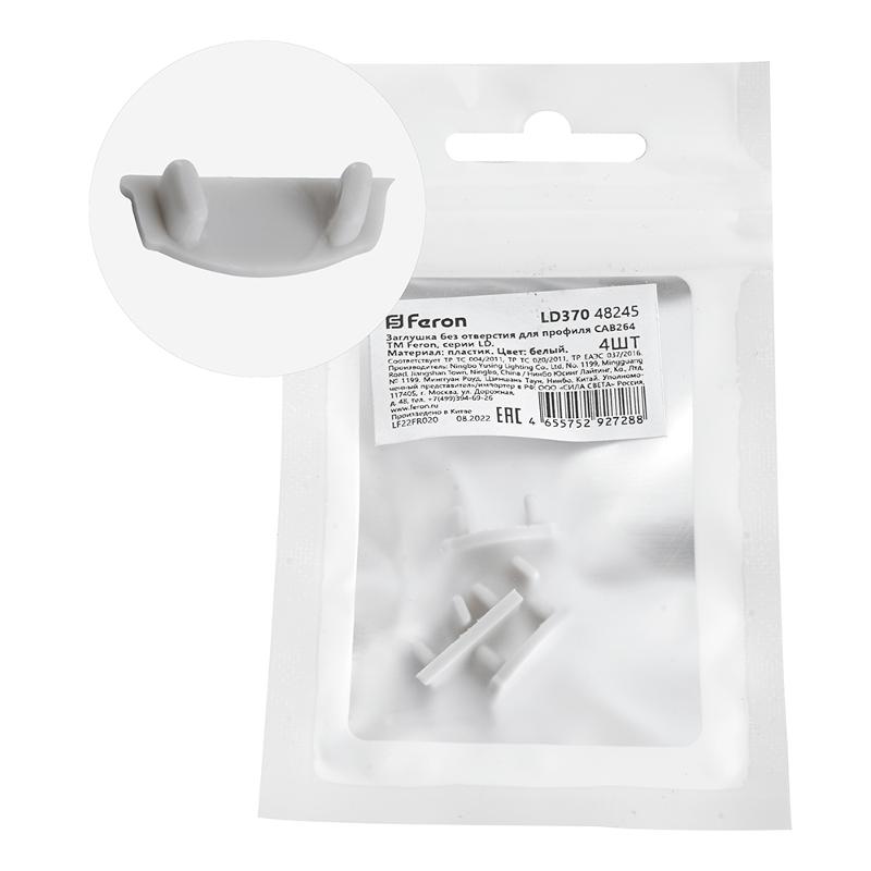 Заглушка без отверстия для профиля CAB264, LD370 (комплект 4шт) FERON | 48245 | FERON