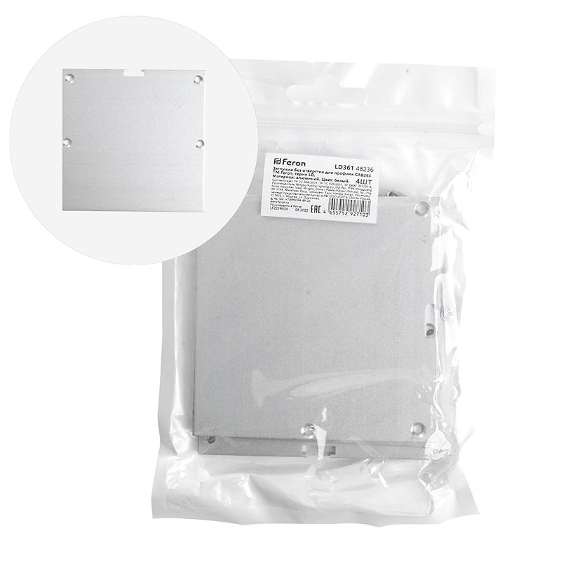 Заглушка без отверстия для профиля CAB265, LD361 (комплект 4шт) FERON | 48236 | FERON