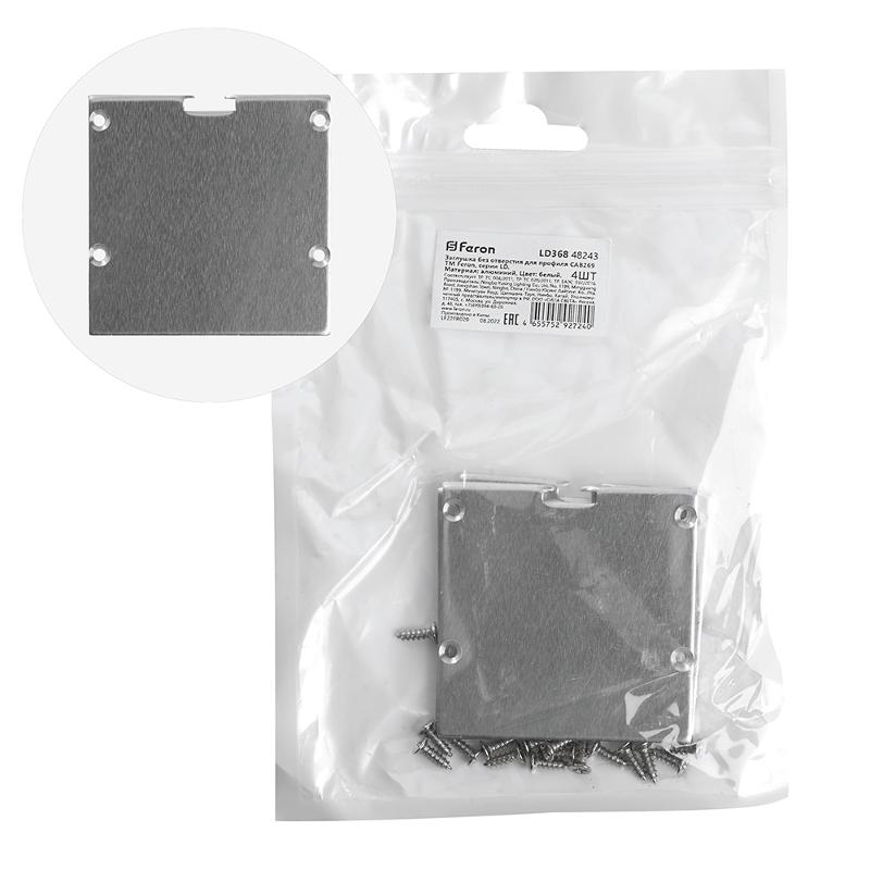 Заглушка без отверстия для профиля CAB269, LD368 (комплект 4шт) FERON | 48243 | FERON