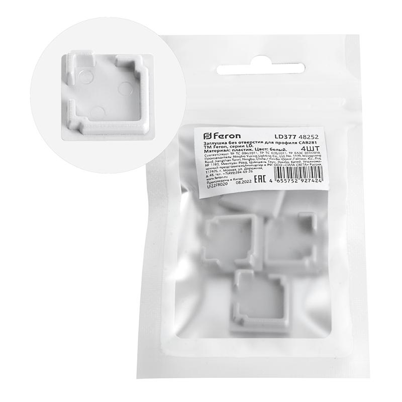 Заглушка без отверстия для профиля CAB281, LD377 (комплект 4шт) FERON | 48252 | FERON