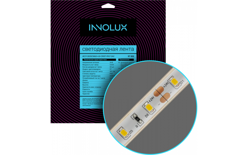 Лента светодиодная 97 353 ИСЛ-2835CW60-4.8-CRI97-IP67-24V | 97353 | INNOLUX