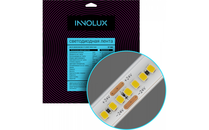 Лента светодиодная 97 380 ИСЛ-2835CW238-17-CRI97-IP67-24V | 97380 | INNOLUX