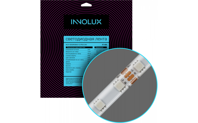 Лента светодиодная 97 400 ИСЛ-5050RGB60-12-IP65-24V | 97400 | INNOLUX
